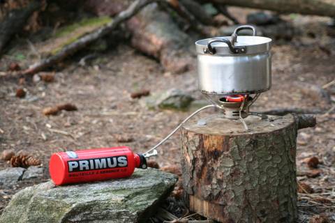 Aber wenn man schon heißgeliebte Ausrüstung hat, muss diese auch zum Einsatz kommen. So haben wir nicht immer auf dem Feuer gekocht sondern auch mal unseren Primus Multifuel ans Werk gelassen. Der ist zwar nicht ganz so schnell wie ein gutes Kochfeuer, macht dafür aber einen Höllenlärm. |